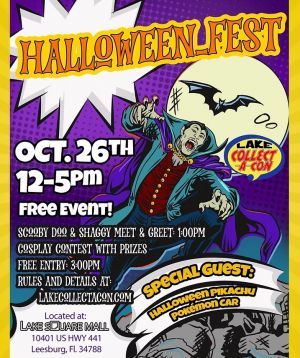 Come to Lake Square Mall for the 5th Annual Halloween Fest! There will be collectible vendors, Special Guest Pickachu Pokémon Car, ...