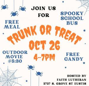 Join us for a family friendly Trunk or Treat event! Candy, food, and fall fun!
