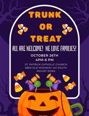 Join us for our annual Trunk or Treat October 25th at 9:00am in the Wesley Parking Lot!