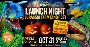 Jurassic Farm Dino Fest launches on Halloween Night with Fireworks, a Moon-Lit, 7-Acre Corn Maze, Candy Cannon Blasts, Dinosaur Feasts ...
