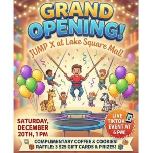 JUMP X Grand Opening at Lake Square Mall! Join us Saturday, December 20 at 1:00 p.m. for the grand opening of ...