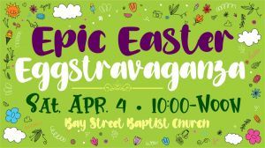 Your family is invited to this FREE morning of Easter fun! Our 5th annual Epic Easter Eggstravaganza features: A Giant Egg Hunt, ...