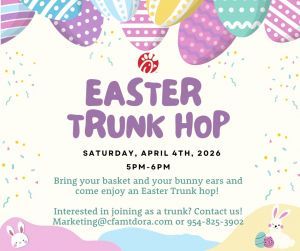 Bring your basket and your bunny ears, come enjoy an Easter Trunk hop and make sure to hop on over ...
